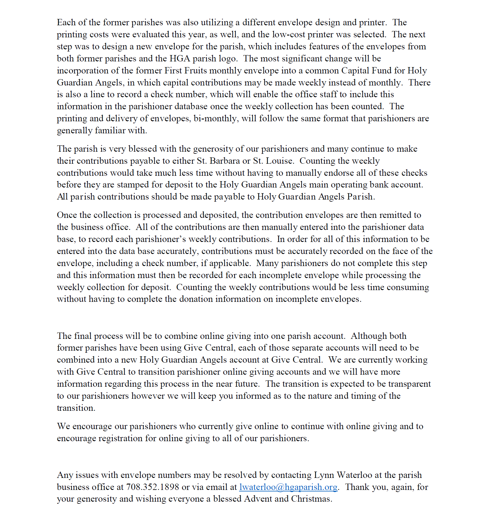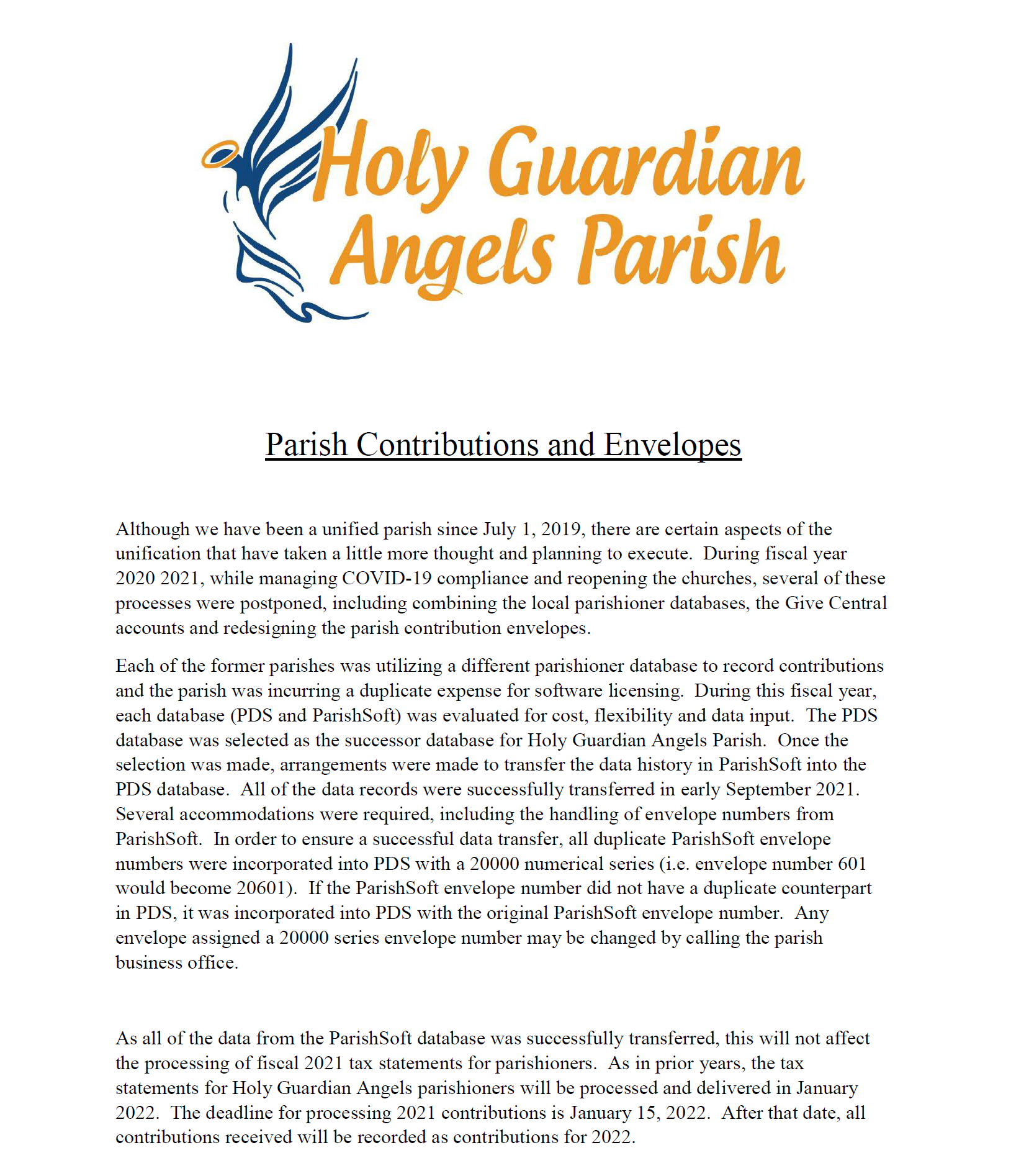 Parish Contributions and Envelopes
